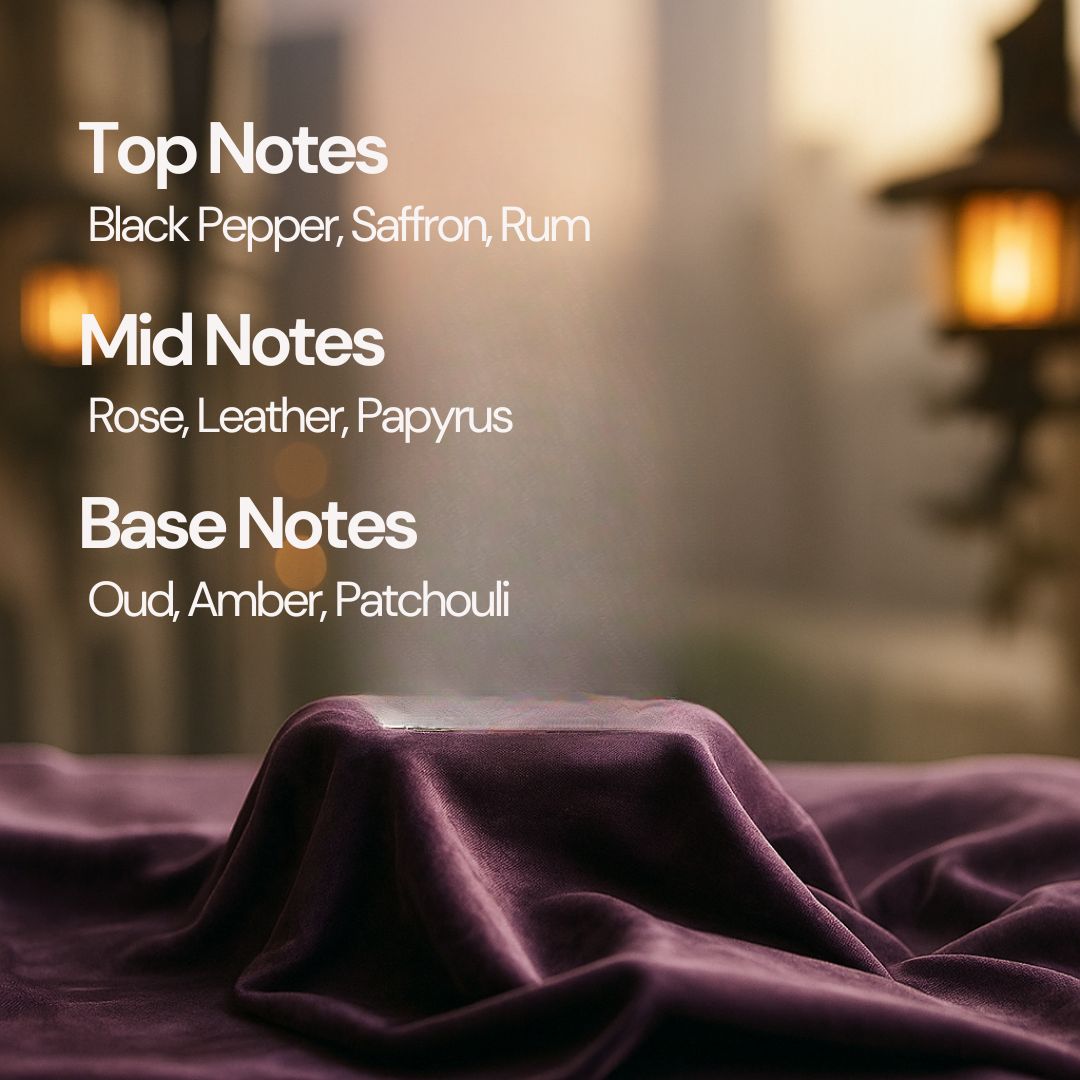 A fragrance that simmers. Starts with the smoky sweetness of roasted tonka bean and black pepper, unfolds into a heart of dark rose and leather, then smoulders into a base of oud and amber. For nights when you want to leave a trail of intrigue.